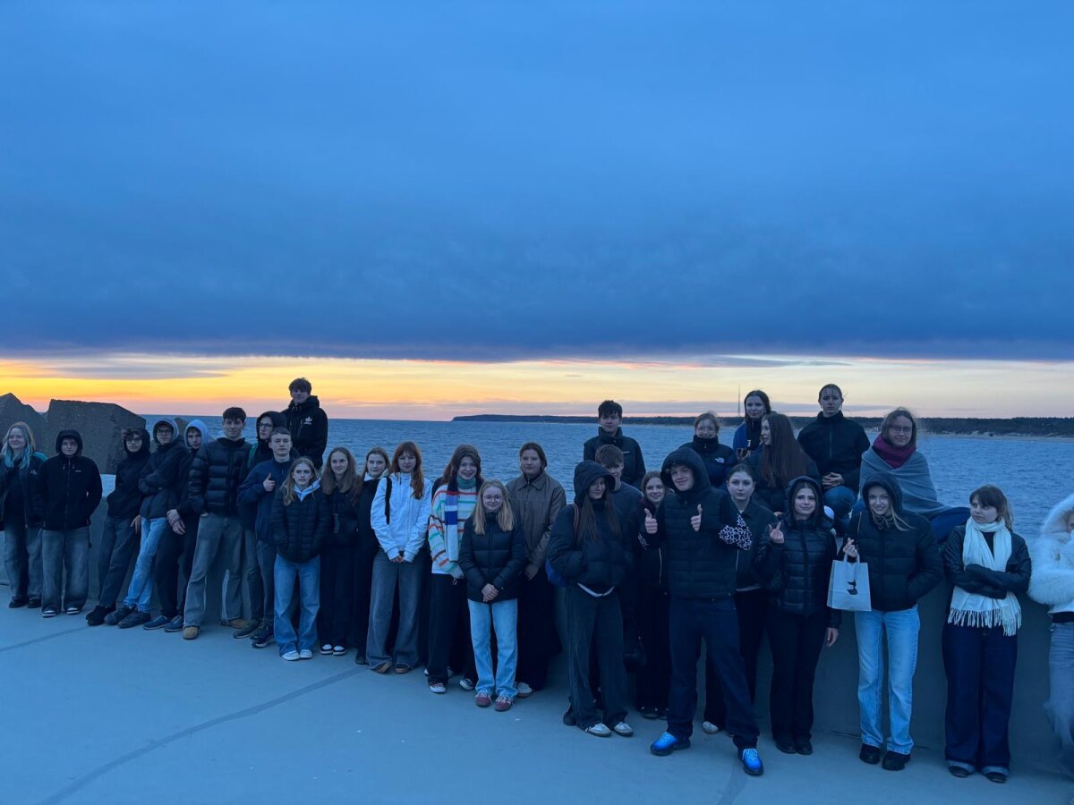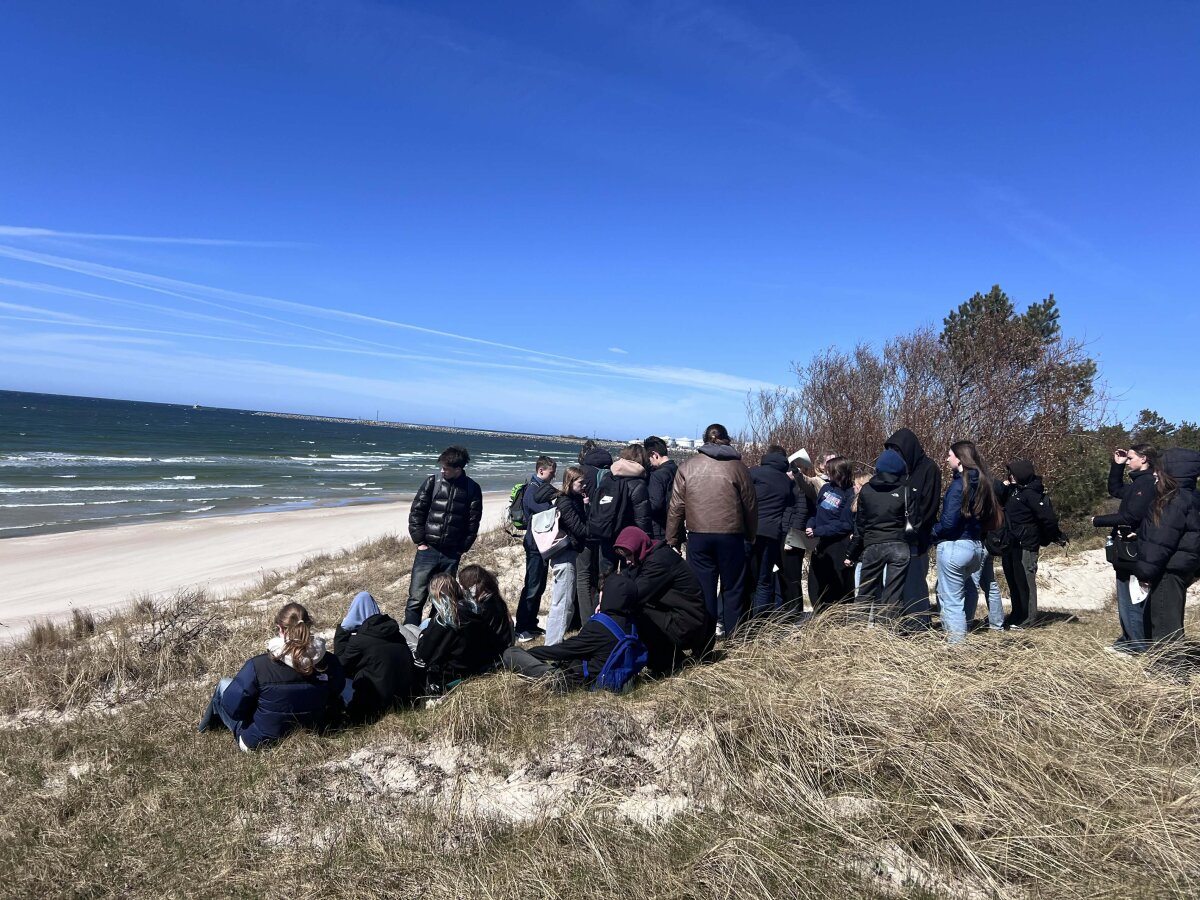 Balandžio 22-24 dienomis mūsų gimnazijoje viešėjo 21 mokinys ir 2 mokytojai iš Sommerdos Alberto Schweitzerio gimnazijos. Svečiai dalyvavo įvairiose pamokose, muzikavo su mokytoja Diana Linkevičiene, kūrė papuošalus su mokytoja Violeta Stumbriene. Mokytoja Vaiva Pabrėžienė supažindino vokiečius su miestu, aplankė Lietuvos jūrų muziejų ir akvariumą. Nors pūtė žvarbus vėjas ir buvo gana šalta, Smiltynėje mokiniai kartu su aukuriečiais tyrinėjo pajūrio augmeniją. Saulė nusileido į debesis ir per saulėlydį būnant ant molo, bet tai nesujaukė geros nuotaikos. Tik liūdna buvo penktadienio rytą išsiskiriant su savo naujomis sesėmis ir broliais, mat vaikai gyveno šeimose. Paguodžia tik tai, kad rudenį arba kitą pavasarį aukuriečiai vyks pas savo naujuosius draugus.