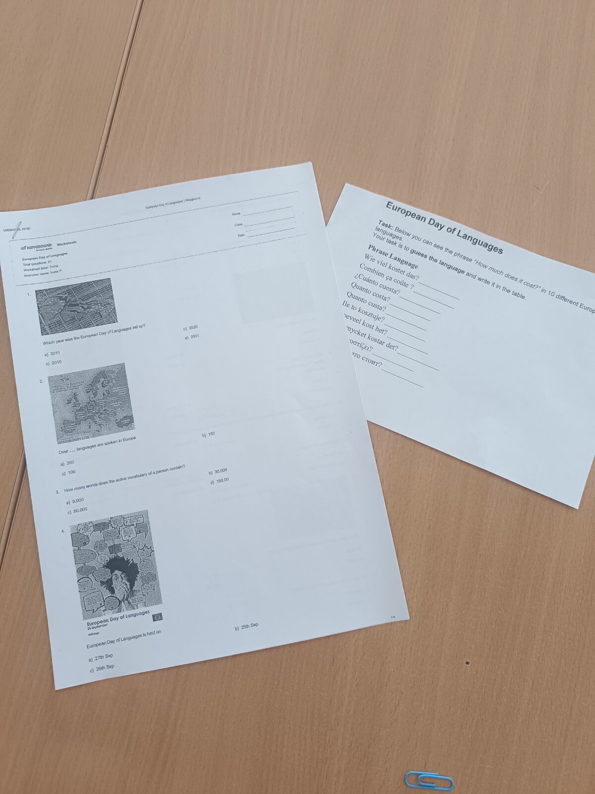 Pamokos metu mokiniai žiūrėjo vaizdo įrašą apie 50 įdomiausių faktų apie Europą, atliko įvairias užduotis komandose, spėliojo, kokiomis kalbomis buvo užrašytos pateiktos frazės. Smagu mokytis, bendradarbiauti ir atrasti kalbų bei kultūrų įvairovę!