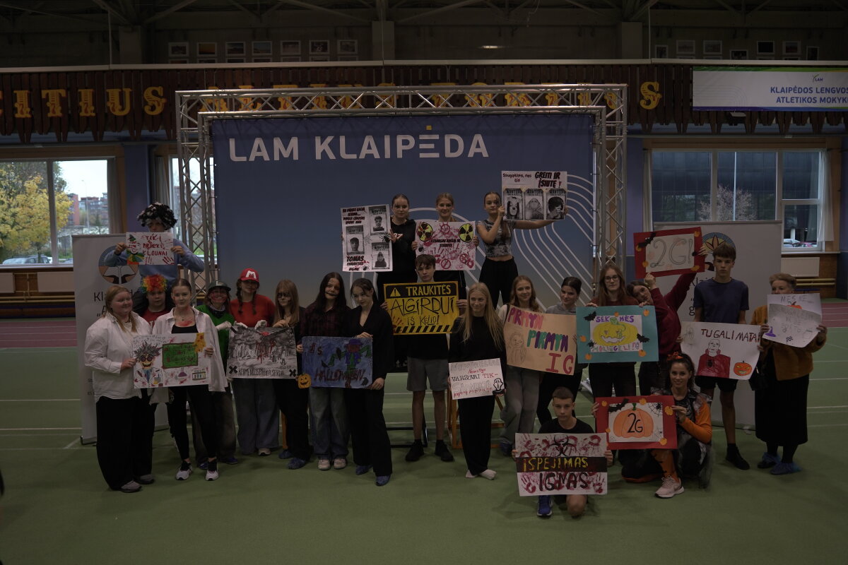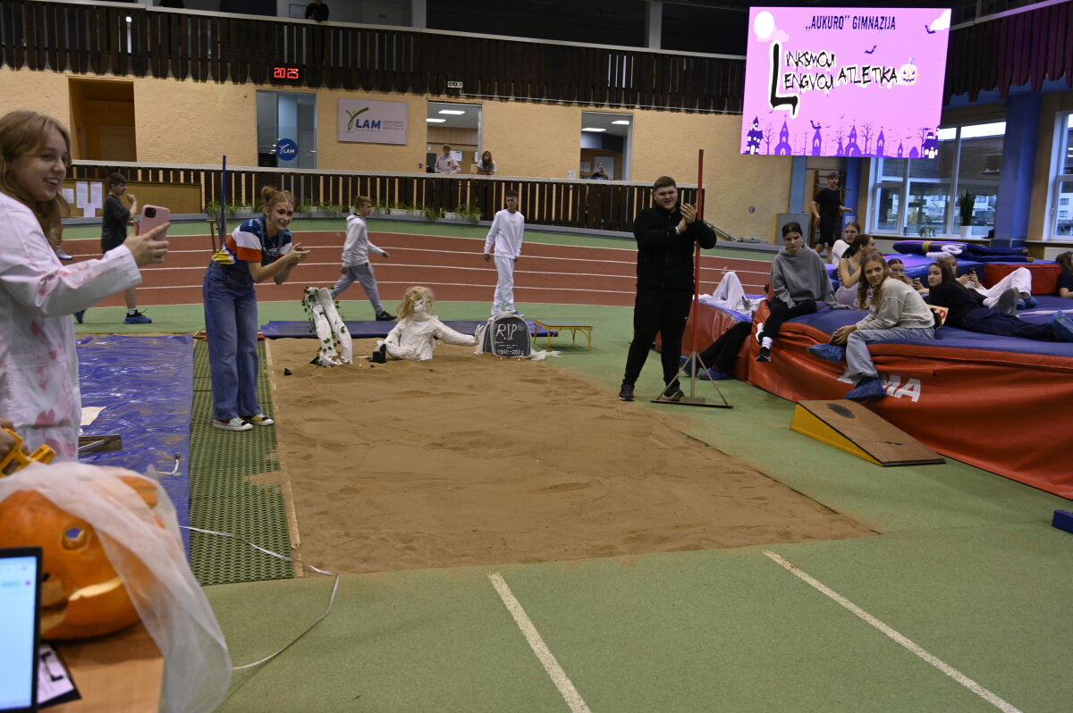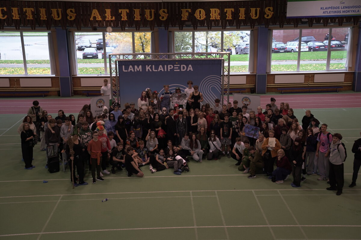 Spalio 31-ąją Adamsų šeimynėlės kvietimu „Aukuro“ gimnazijos bendruomenė susirinko Klaipėdos lengvosios atletikos mokykloje. Mokiniai dalyvavo S(VEIK) renginyje - Linksmosiose atletikos varžybose, kupinose įvairiausių staigmenų, konkuravo gražiausio plakato ir įspūdingiausio kostiumo konkursuose.