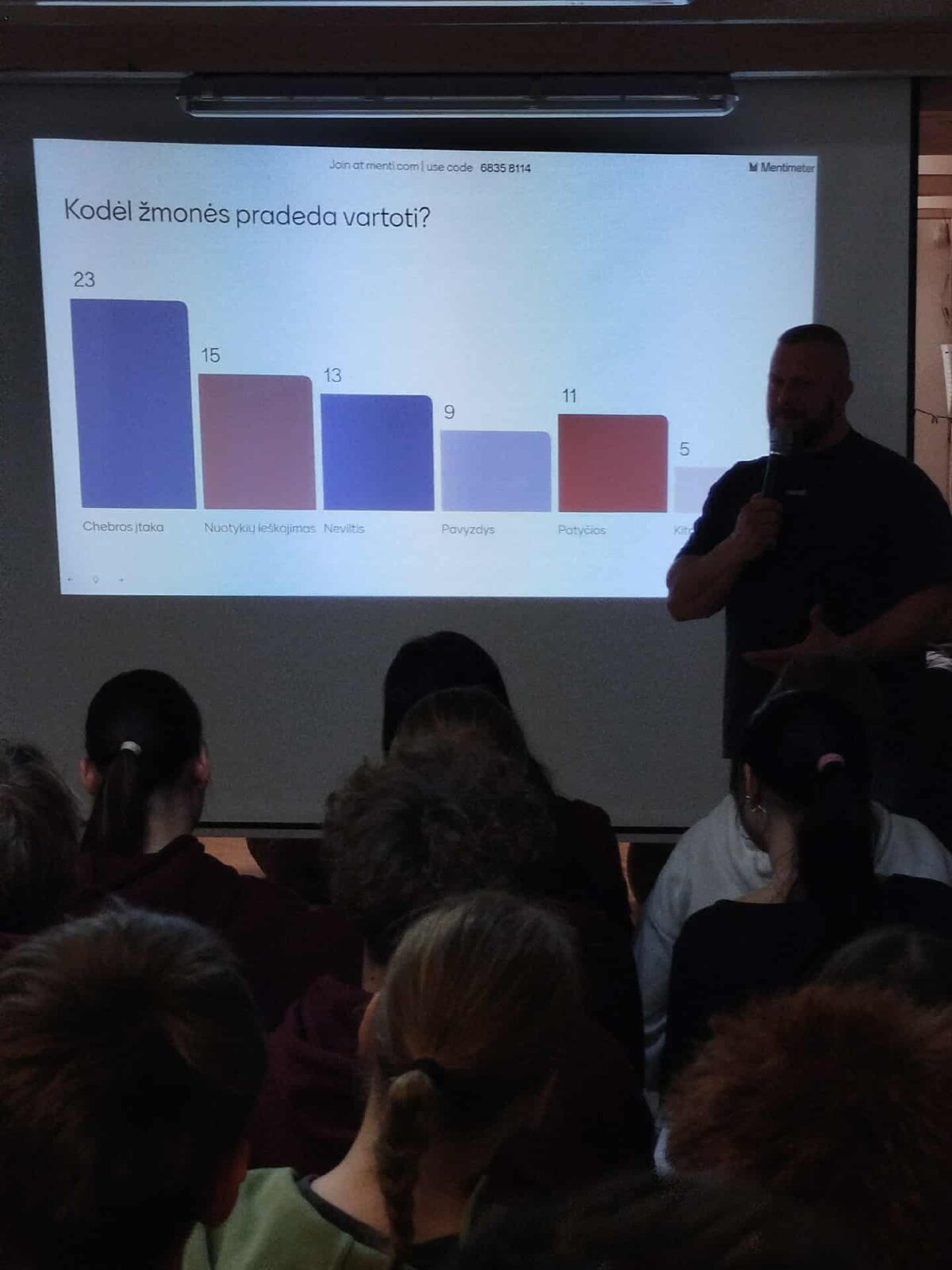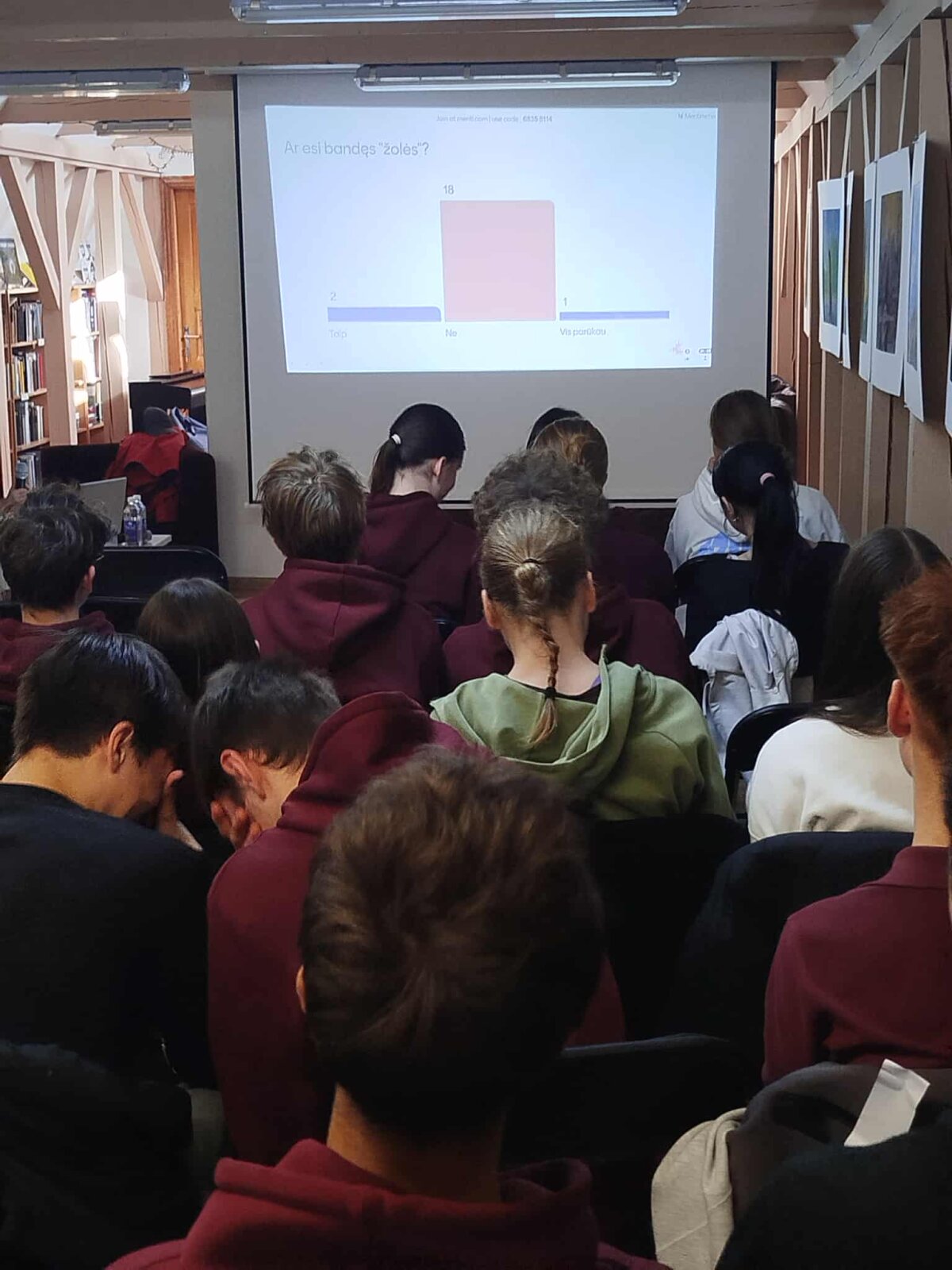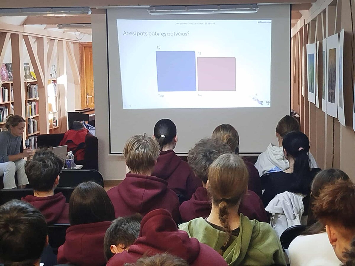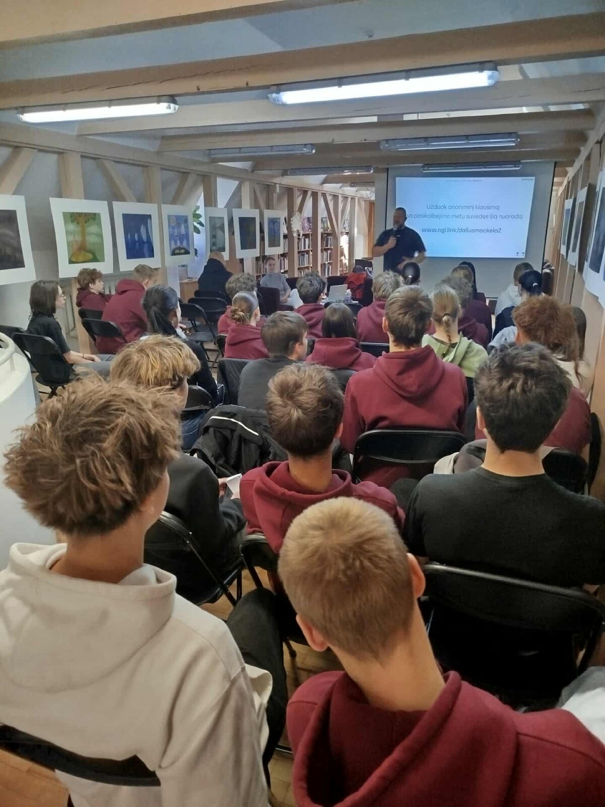 Tai tik maža dalis to, kas vyko vakar prevenciniame renginyje jaunimui „Pokalbiai apie..“ su komanda „Būrys“ KMSVB Jaunimo biblioteka, kuriame dalyvavo I S klasės mokiniai.