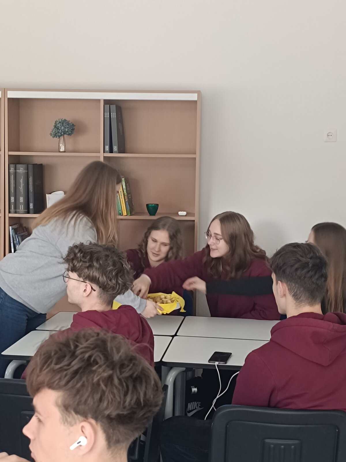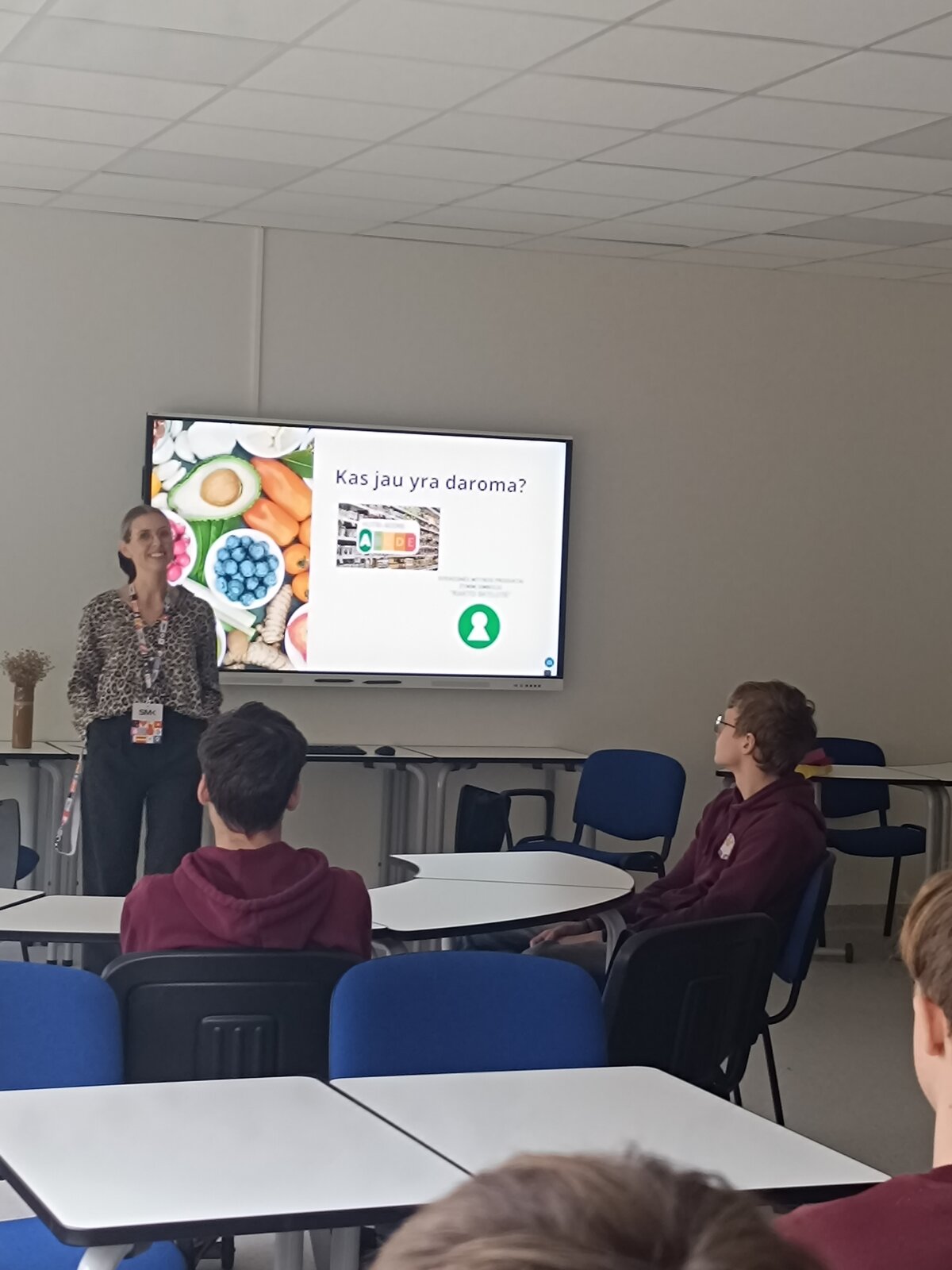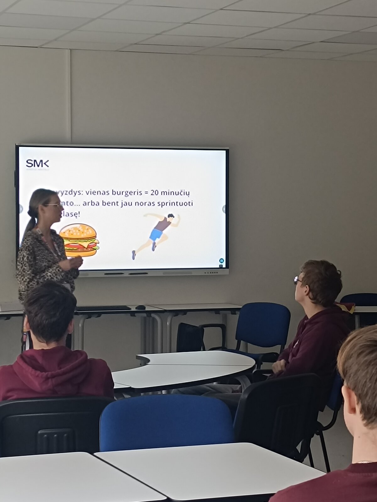 Šiandien IIB ir IIG klasių mokiniai dalyvavo edukaciniame užsiėmime „Fit Lab – tavo kasdienybės iššūkis“, kurį organizavo SMK dėstytoja kartu su savo studente. Užsiėmimo metu mokiniai kartu su dėstytoja diskutavo apie jaunų žmonių mitybos įpročius bei galimybes juos pagerinti. Vėliau dirbdami grupėse jie kūrė idėjas, kaip paauglius paskatinti rinktis sveikus produktus, dažniau pirkti vaisius ir daržoves. Galiausiai grupės pristatė savo kūrybiškus pasiūlymus visai auditorijai.