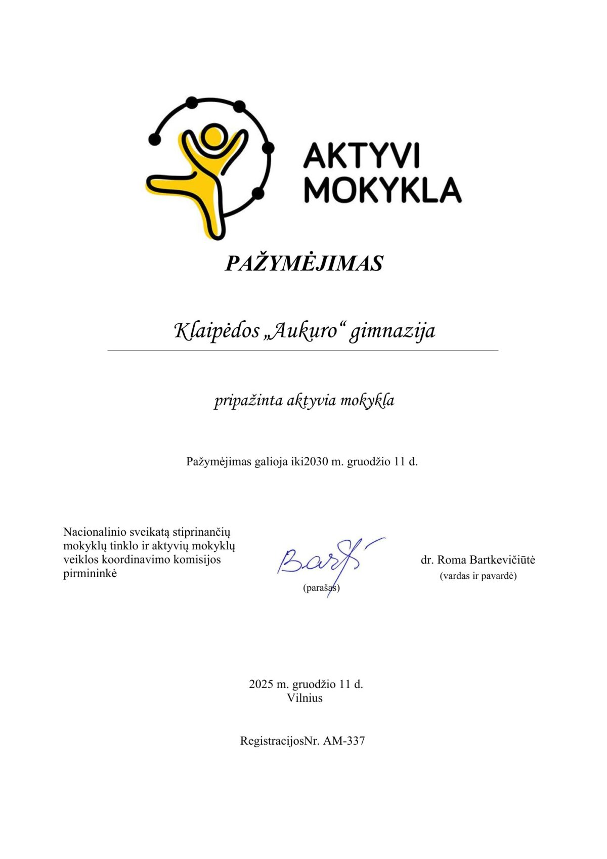 Norime pasidžiaugti ir pasidalinti mūsų gimnazijos ypač svariais pasiekimais. Nacionalinis higienos institutas puikiai įvertino mūsų jau atliekamas veiklas bei ateities planus. Už aktyvias, judumą skatinančias, sveikatą puoselėjančias veiklas bei svarios ir tikslingos informacijos sklaidą, gimnazija įgijo aktyvios mokyklos ir sveikatą stiprinančios mokyklos statusus. Džiaugiamės, kad galime, norime ir esame šitame kelyje!