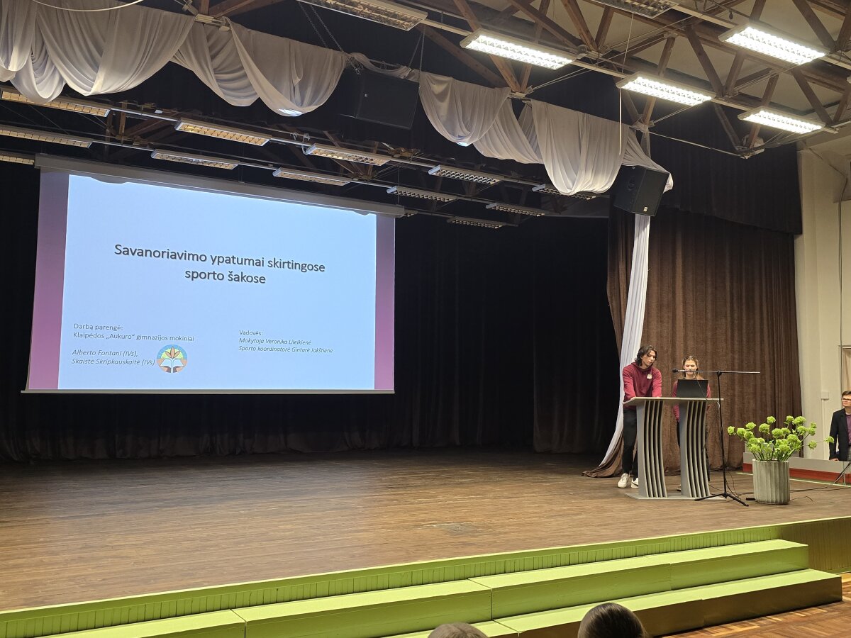 Mūsų gimnaziją atstovavo: Egita Kivilytė (IIG) su pranešimu „Patirtys, kurios keičia“ – įkvepianti istorija apie savanorystę ir jos kuriamą vertę tiek jaunam žmogui, tiek bendruomenei. Urtė Sadauskaitė (IV A) pristatė pranešimą „Nuo gerų darbų iki didelių galimybių: savanorystės galia jaunuoliams“, primindami, kaip savanorystė atveria naujus kelius, suteikia prasmingų patirčių ir padeda augti.